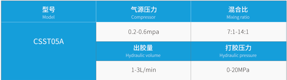 出胶连续稳定.换向平稳可靠;出胶量大,打胶压力高,出胶量调节方便;比例调节方便;胶枪混合均匀,胶枪轻,操作方便;