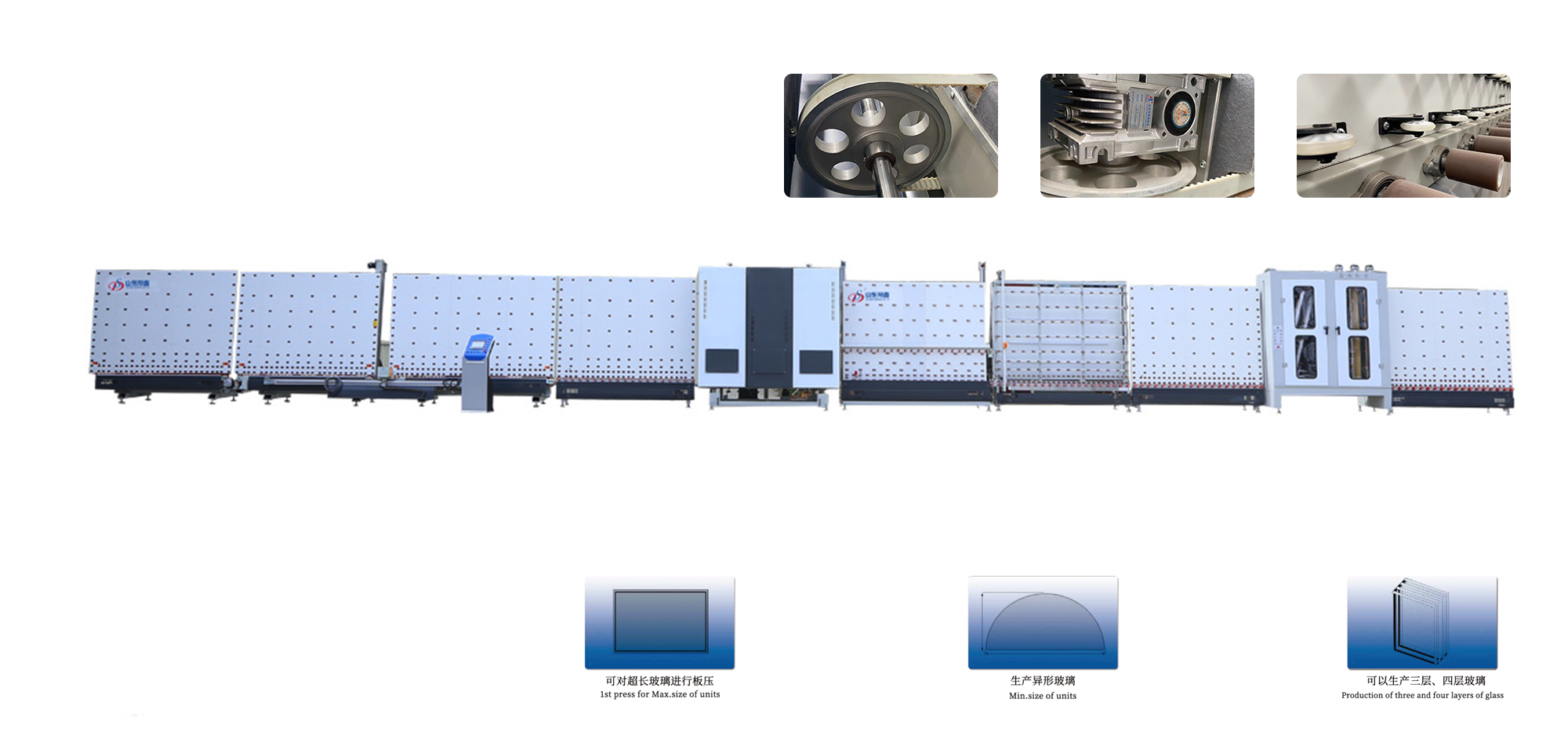 Automatic numerical control hollow glass production line (LOW-E hollow glass can be produced)Washing machine using 3 pairs of LOW-E special brush design and glass brush to avoid membrane damage .